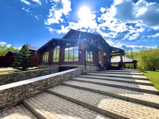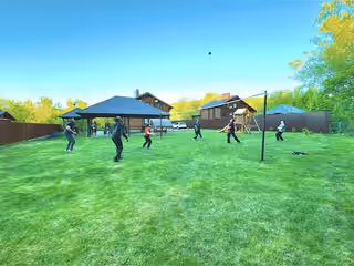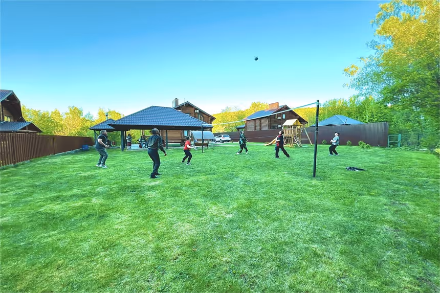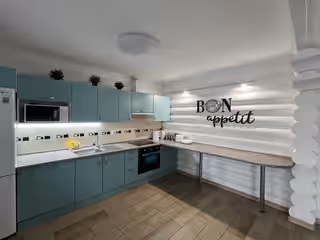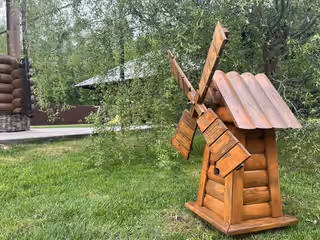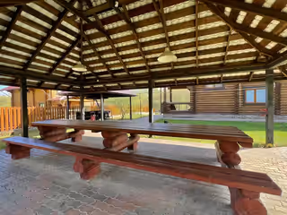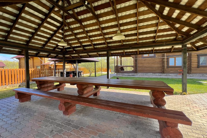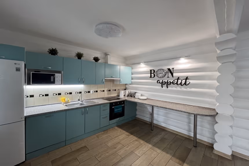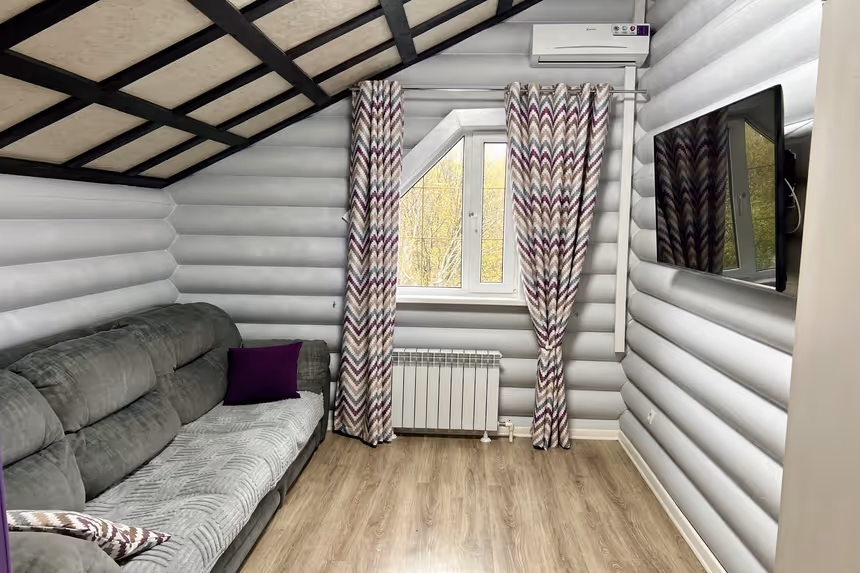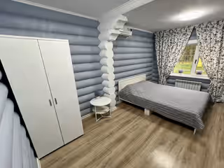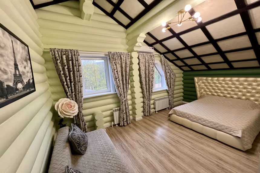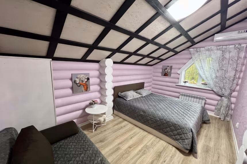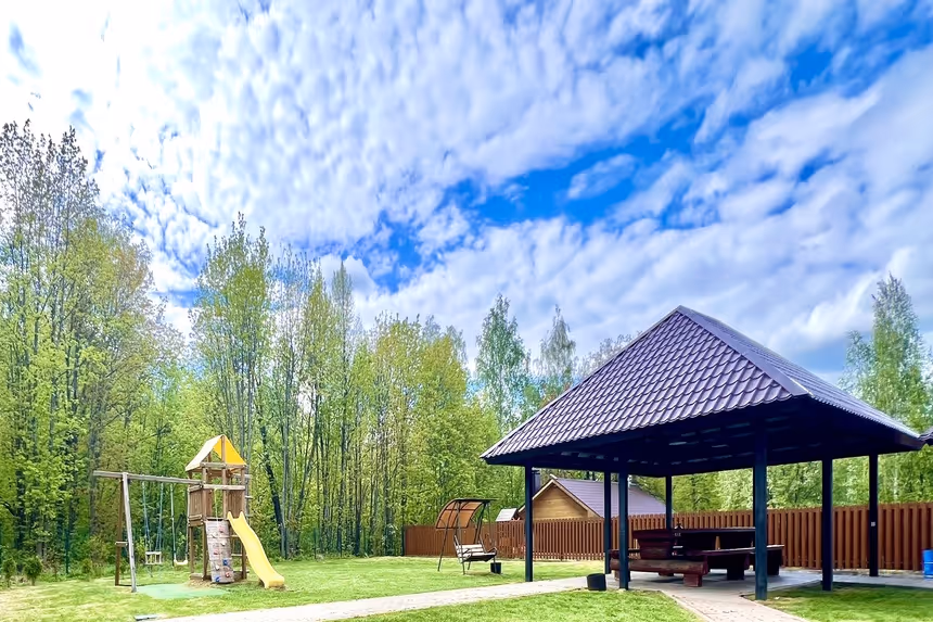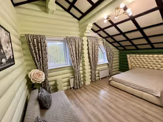 Двухэтажный коттедж площадью 200 кв.м. имеет все условия как для проведения торжества, так и для семейного отдыха. К Вашим услугам: просторная гостиная с полностью оборудованной кухней, вмещает до 35 гостей, четыре спальные комнаты с кондиционерами, два санузла, а так же терраса, уличная беседка и мангал.