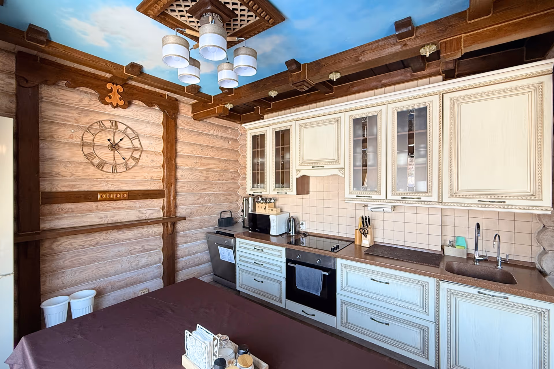 Этот дом уникален тем, что практически во всех его комнатах потолки оформлены очень оригинально. А в одной из спален вас ждет красивое пано с плавающими по озеру лебедями. Кроме этого из окон этого дома открывается вид сразу на оба озера, что позволит вам и вашим гостям наслаждаться прекрасной картинкой за окном во время застолья. В цокольном этаже вас ждет просторная сауна с комнатой отдыха, а на улице большая беседка, где в теплые дни можно прекрасно провести время компанией до 30 человек!